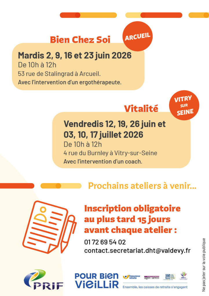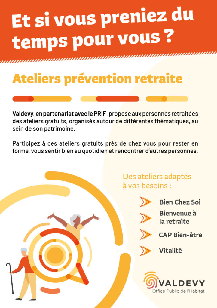 Valdevy, en partenariat avec le PRIF, propose aux personnes retraitées des ateliers gratuits, organisés autour de différentes thématiques, au sein de son patrimoine. Participez à ces ateliers gratuits près de chez vous pour rester en forme, vous sentir bien au quotidien et rencontrer d’autres personnes.