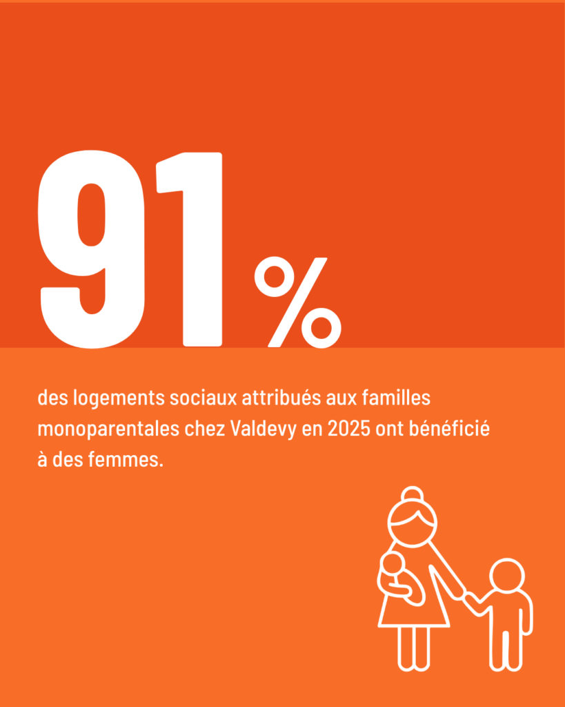 Chez Valdevy, l’accompagnement des familles monoparentales fait partie des priorités. En 2025, 91 % des logements sociaux attribués à des familles monoparentales ont bénéficié à des femmes.